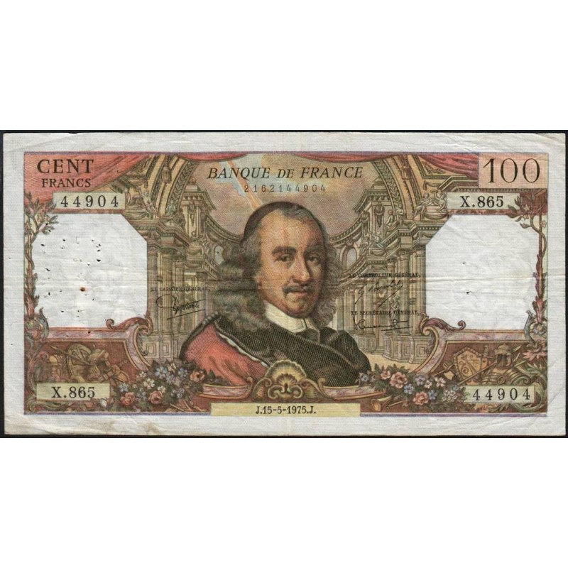F 65-49 - 15/05/1975 - 100 francs - Corneille - Série X.865 - Etat : TB