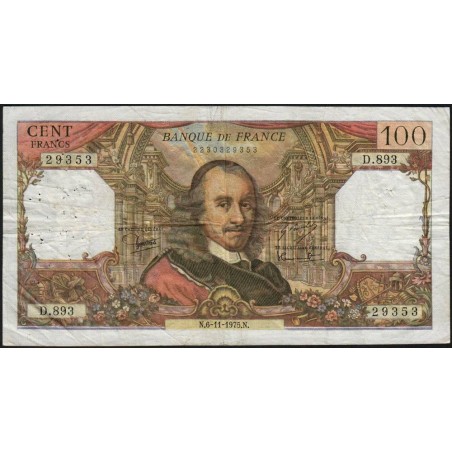 F 65-50 - 06/11/1975 - 100 francs - Corneille - Série D.893 - Etat : TB-