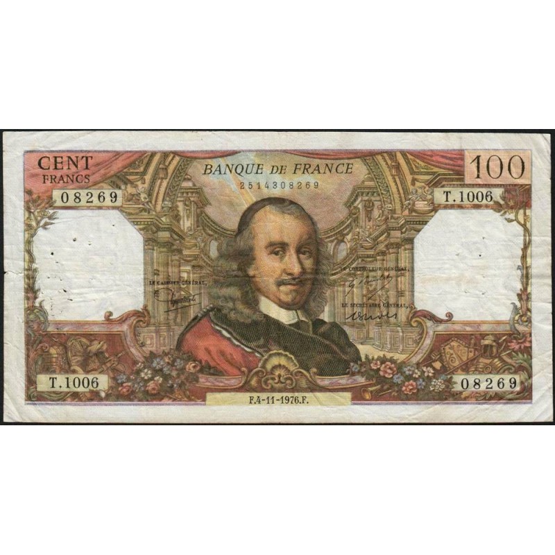 • F 65-55 - 04/11/1976 - 100 francs - Corneille - Série T.1006 - Etat : TB-
