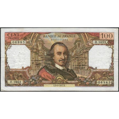F 65-57 - 03/03/1977- 100 francs - Corneille - Série H.1053 - Etat : TB+