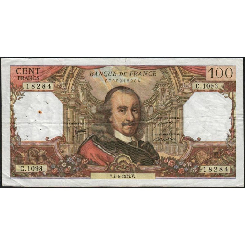 F 65-58 - 02/06/1977- 100 francs - Corneille - Série C.1093 - Etat : TB