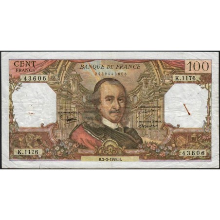 F 65-62 - 02/03/1978- 100 francs - Corneille - Série K.1176 - Etat : TB-