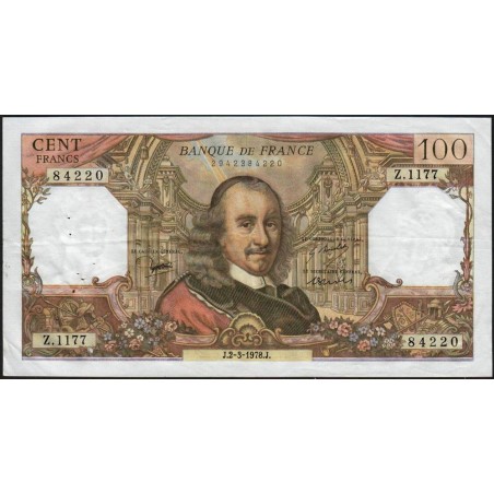 F 65-62 - 02/03/1978- 100 francs - Corneille - Série Z.1177 - Etat : TTB