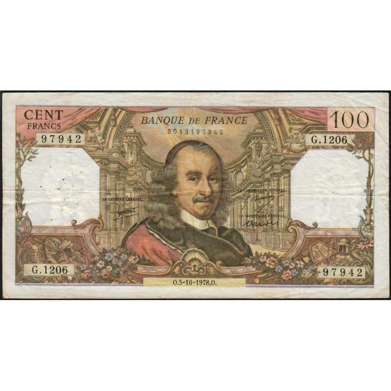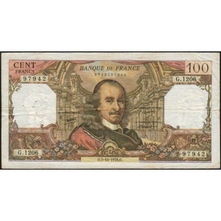F 65-63 - 05/10/1978- 100 francs - Corneille - Série G.1206 - Etat : TB