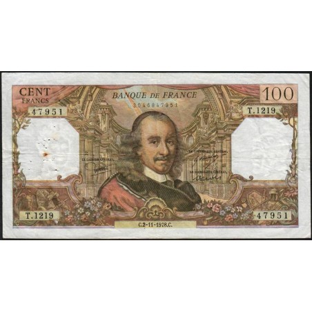 F 65-64 - 02/11/1978- 100 francs - Corneille - Série T.1219 - Etat : TB