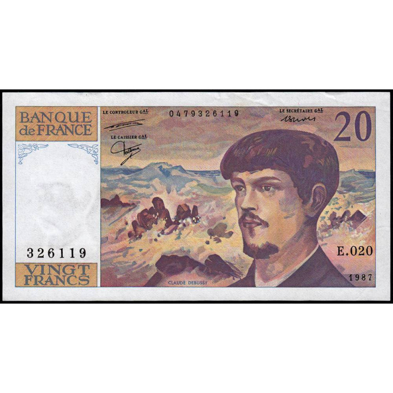 • F 66-08 - 1987 - 20 francs - Debussy - Série E.020 - Etat : TTB