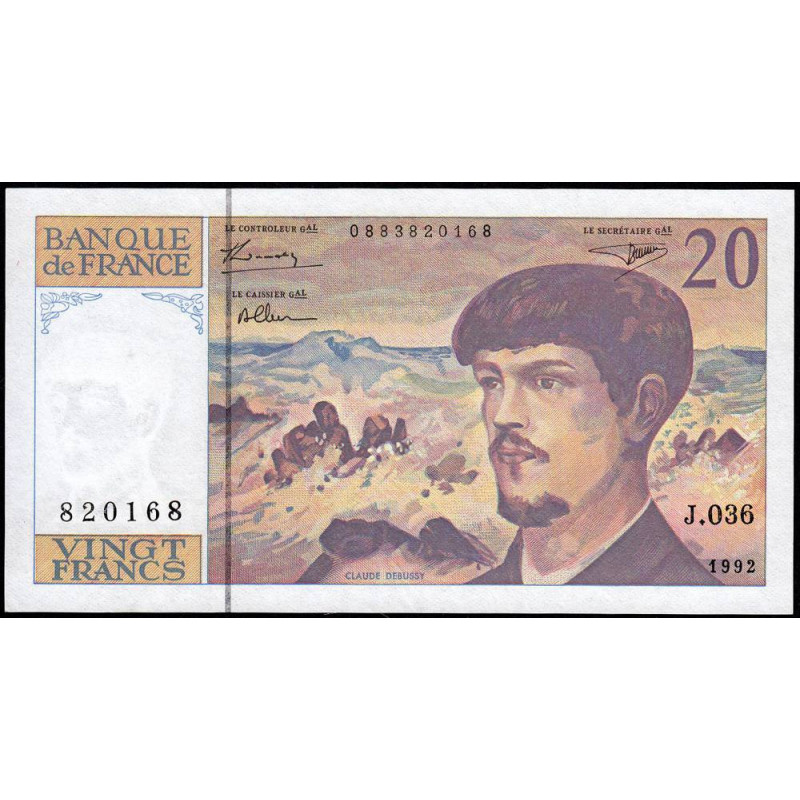 • F 66bis-03 - 1992 - 20 francs - Debussy - Série J.036 - Etat : SUP