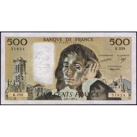 F 71-36 - 22/01/1987 - 500 francs - Pascal - Série K.259 - Etat : TTB-
