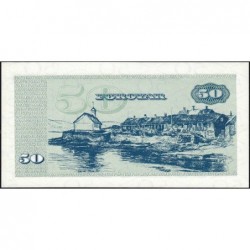 Revers : Village au bord de l'eau de Nólsøy, lieu de naissance de Nólsoyar Páll