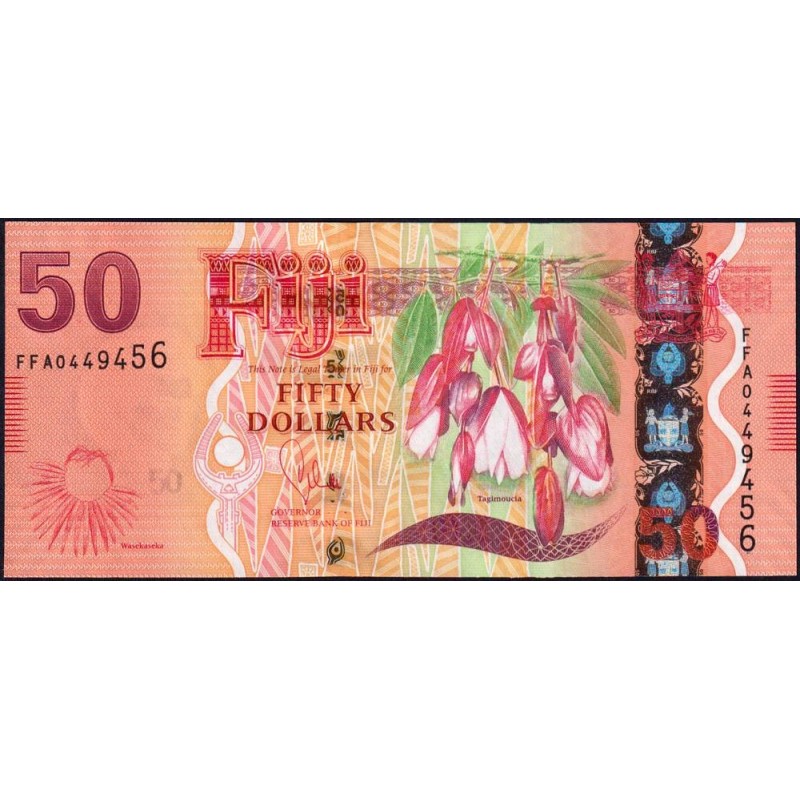 Revers : Présentation traditionnelle du tabua (dents de cachalot sculptées) et du yaqona (boisson nationale non alcoolisé)