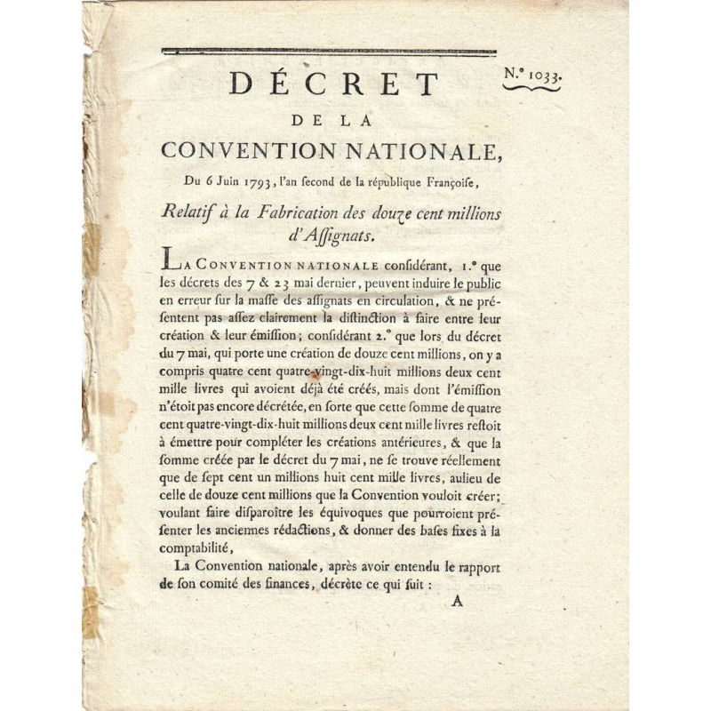 Décrets des 7 et 23 mai dernier, et la création de douze cent millions de livres en Assignats.