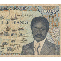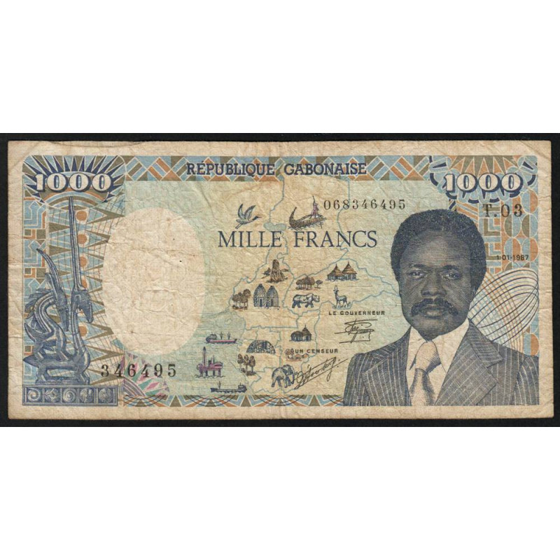 Avers : Statuette animalière en bois sculpté, carte des Etats de l'Afrique Centrale, portrait de Omar Bongo Ondimba (1935-2009) président de la république de 1967 à 2009