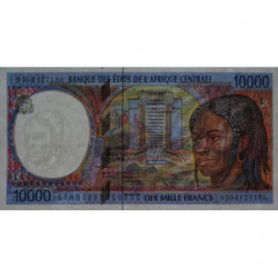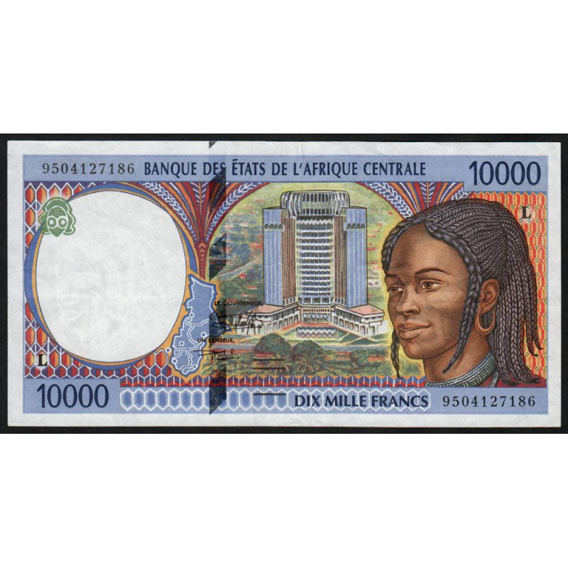 Avers : Carte de l'Afrique centrale, bâtiment de la BEAC à Yaoundé, portrait d'une femme coiffée de tresses traditionnelles