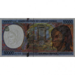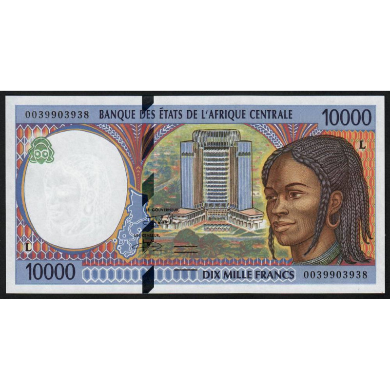 Avers : Carte de l'Afrique centrale, bâtiment de la BEAC à Yaoundé, portrait d'une femme coiffée de tresses traditionnelles
