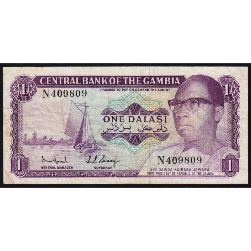 Avers : Voilier sur le fleuve Gambie, portrait de Sir Dawda Kairaba Jawara(1924-2019) président de la Gambie de 1970 à 1994