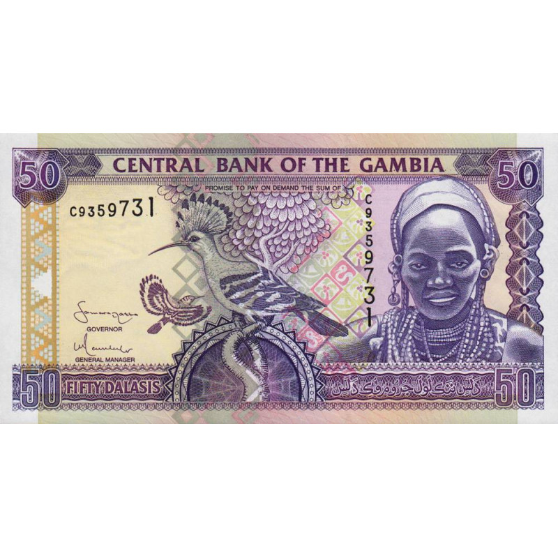 Avers : Oiseau huppe fasciée, femme gambienne au foulard de face