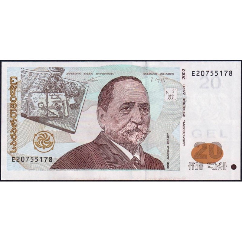 Avers : Portrait de l'écrivain Ilia Chavchavadze (1807-1907), magazines Saartvelos Moambe et Iveria fondés par Ilia Chavchavadze