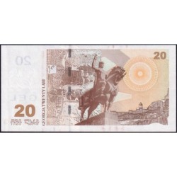 Revers : Statue équestre du roi Vakhtang Gorgasali (440-502) au sommet d'une colline dominant la vieille ville de Tbilissi, carte de Tbilissi tracée par Vakhushti Bagrationi au XVIIIe siècle