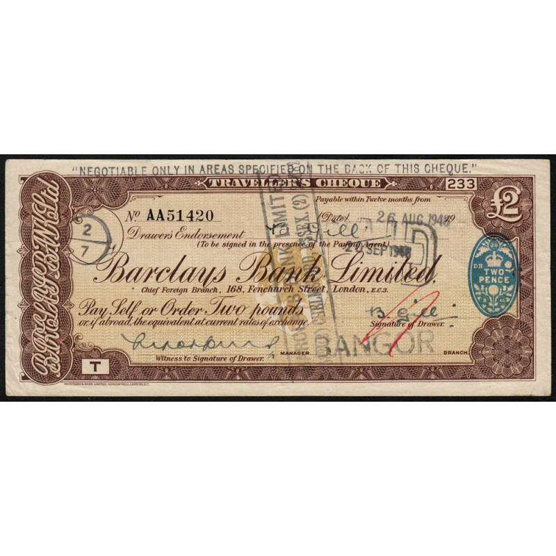 Grande-Bretagne - Chèque Voyage - Barclays - 2 pounds - 1948 - Etat : TTB+
