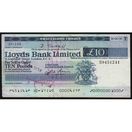 Grande-Bretagne - Chèque Voyage - Lloyds - 10 pounds - 1978 - Etat : SUP