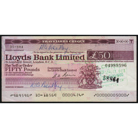 Grande-Bretagne - Chèque Voyage - Lloyds - 50 pounds - 1980 - Etat : SUP