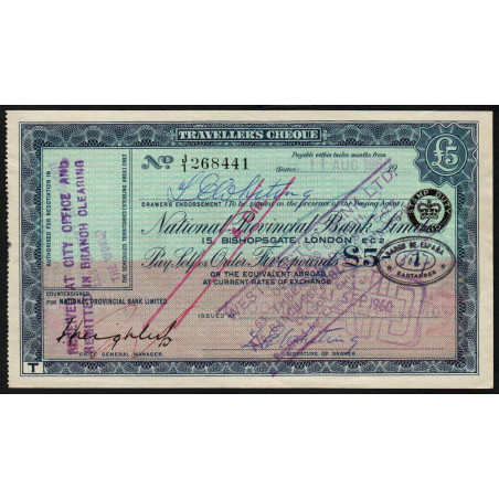 Grande-Bretagne - Chèque Voyage - National Provincial - 5 pounds - 1960 - Etat : TTB