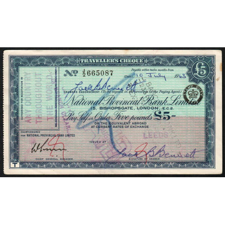 Grande-Bretagne - Chèque Voyage - National Provincial - 5 pounds - 1963 - Etat : TTB+