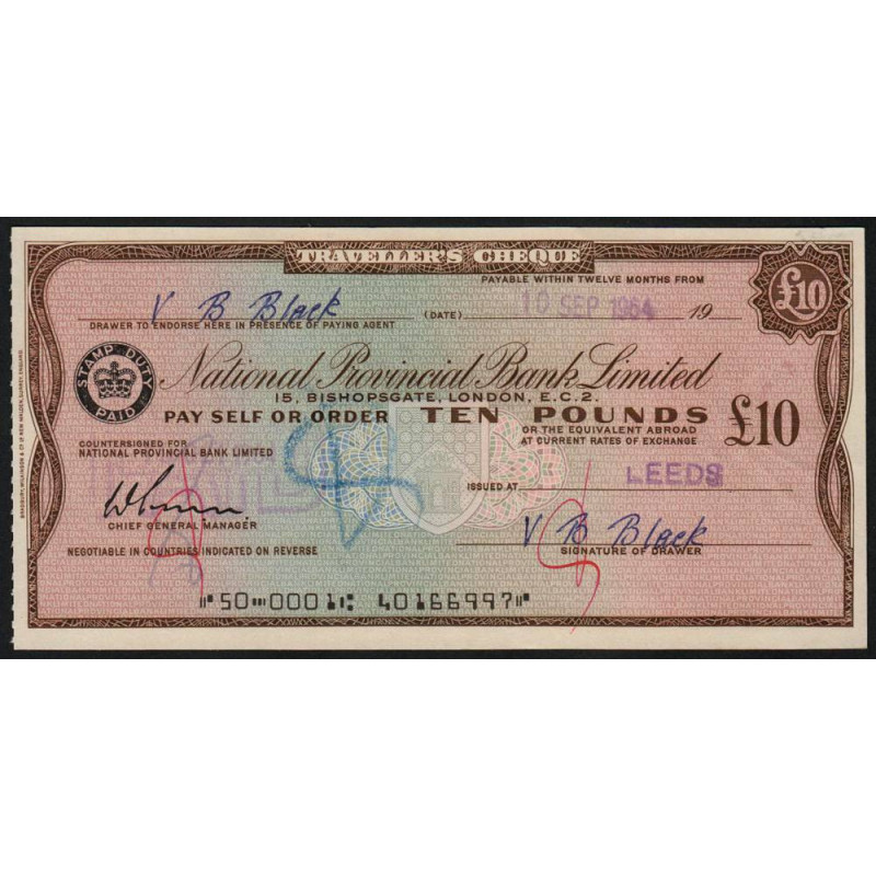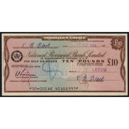 Grande-Bretagne - Chèque Voyage - National Provincial - 10 pounds - 1964 - Etat : SPL