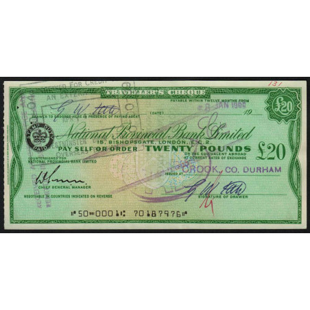 Grande-Bretagne - Chèque Voyage - National Provincial - 20 pounds - 1965 - Etat : SUP