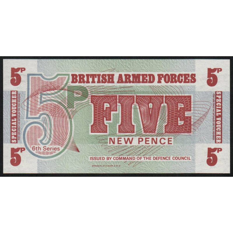 Billet prévu en 1972 pour les troupes britanniques stationnées à Berlin Ouest mais jamais utilisé (différenciée de la première 6ème émission par le nom de l'imprimeur)