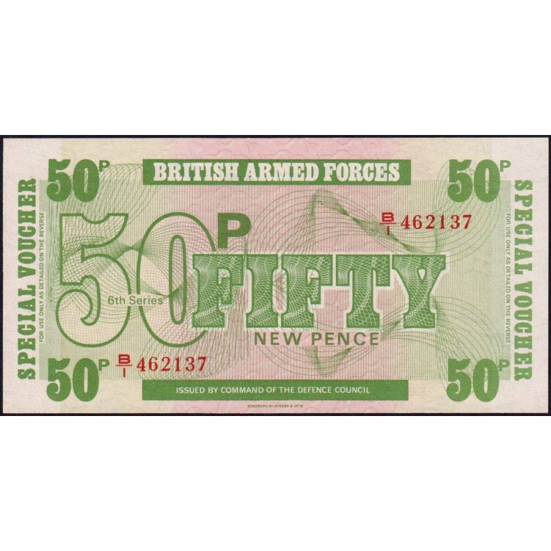 Billet prévu en 1972 pour les troupes britanniques stationnées à Berlin Ouest mais jamais utilisé (différenciée de la première 6ème émission par le nom de l'imprimeur)