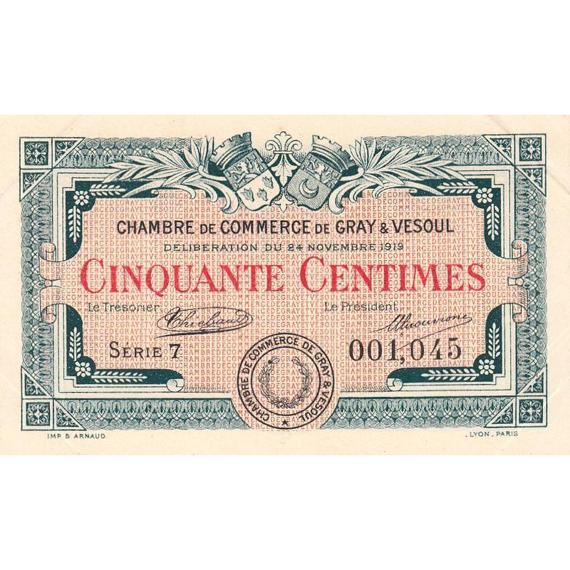 Gray & Vesoul - Pirot 62-11 - 50 centimes - Série 7 - 1919 - Etat : SUP+