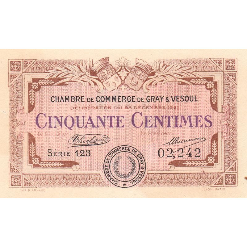 Gray & Vesoul - Pirot 62-19 - 50 centimes - Série 123 - 1921 - Etat : SUP+