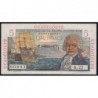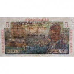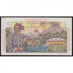 Revers : Femme des Antilles françaises en habits traditionnels accoudée sur une corbeille de fruits, maison créole, palmiers, montagne