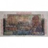 Revers : Femme des Antilles françaises en habits traditionnels accoudée sur une corbeille de fruits, maison créole, palmiers, montagne