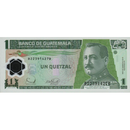 Guatémala - Pick 109 - 1 quetzal - 20/12/2006 - Série B B - Polymère - Etat : NEUF