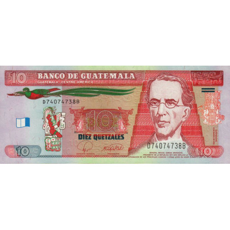 Avers : Portrait du général Miguel García Granados (1809-1878) président de 1871 à 1873, oiseau quetzal en vol