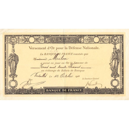 78 - Versailles - Versement d'or pour la Défense Nationale - 1916 - Etat : TTB+