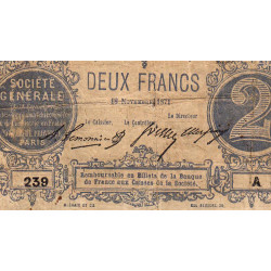 Paris - Société Générale - Jer 75.02B - 2 francs - Série A - 18/11/1871 - Etat : B+