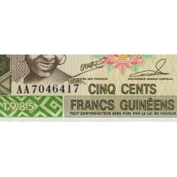 • Guinée - Pick 31a_1 - 500 francs guinéens - Série AA - 1985 - Etat : NEUF