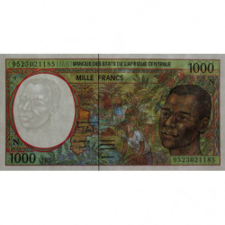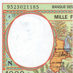 Avers : Carte de l'Afrique centrale, trois femmes et un homme récoltant des baies de café, portrait d'un homme