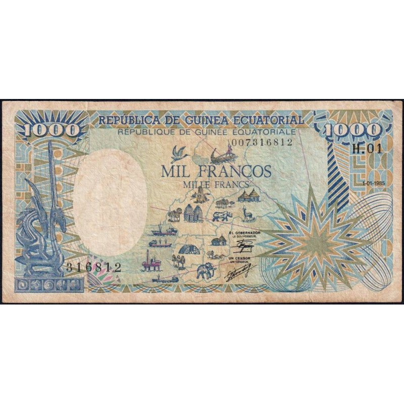 • Guinée Equatoriale - Pick 21 - 1'000 francs - Série H.01 - 01/01/1985 - Etat : TB+