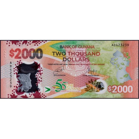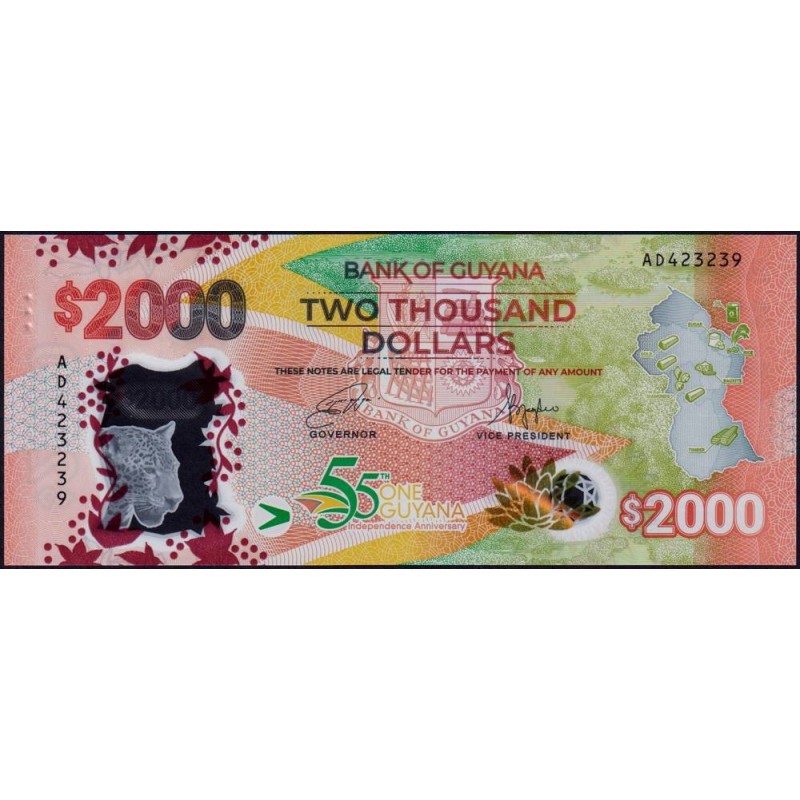 Avers : Logo de la Banque, drapeau et carte du Guyana