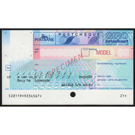 Hollande - Postchèque spécimen - 1991 - Etat : NEUF