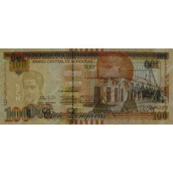 Avers : A gauche emblème du pays, à droite portrait de José Cecilio del Valle (1777-1834) rédacteur de l'acte d'indépendance centre-américaine en 1821, pont suspendu sur le rio Choluteca