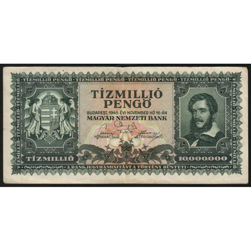 Hongrie - Pick 123 - 10'000'000 pengö - Série O 229 - 16/11/1945 - Etat : TTB