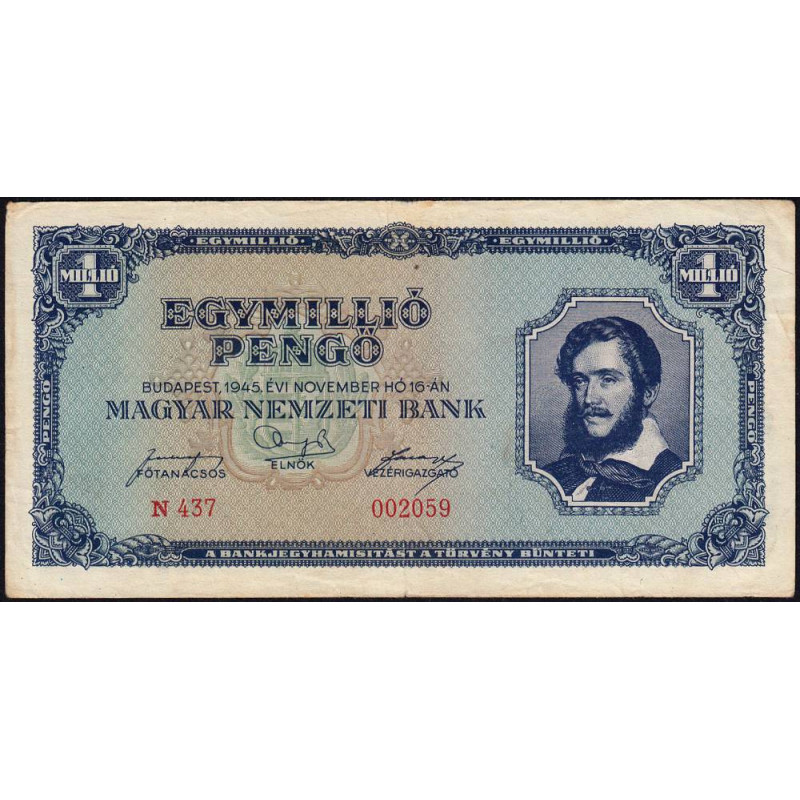 • Hongrie - Pick 122 - 1'000'000 pengö - Série N 437 - 16/11/1945 - Etat : TB+