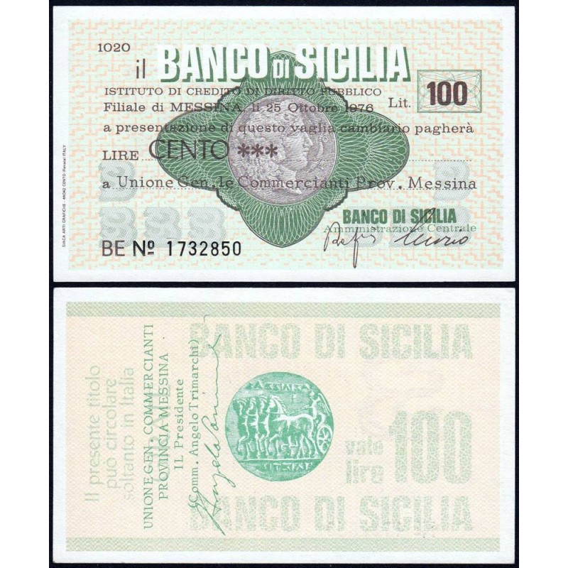 Italie - Miniassegni - Il Banco di Sicilia - 100 lire - 25/10/1976 - Etat : NEUF