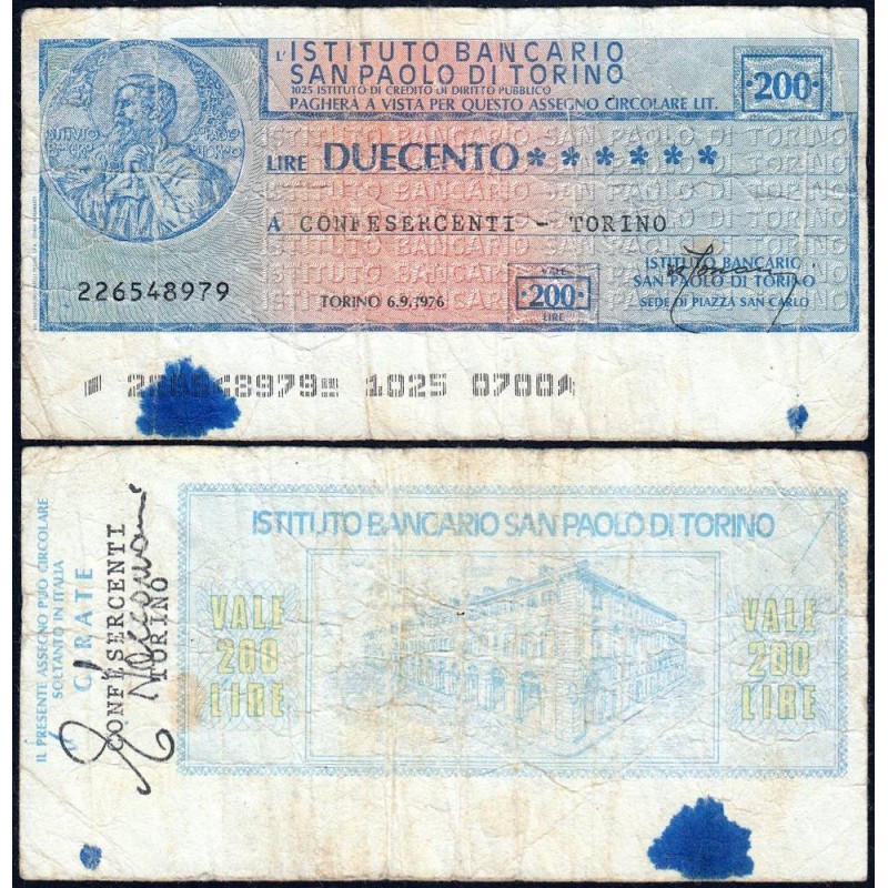 Italie - Miniassegni - L'Istituto Bancario San Paolo di Torino - 200 lire - 06/09/1976 - Etat : TB-