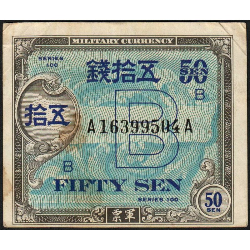 Japon - Occupation alliée - Pick 65 - 50 sen - Lettres B / A A - Série 100 - 1945 - Etat : TB+